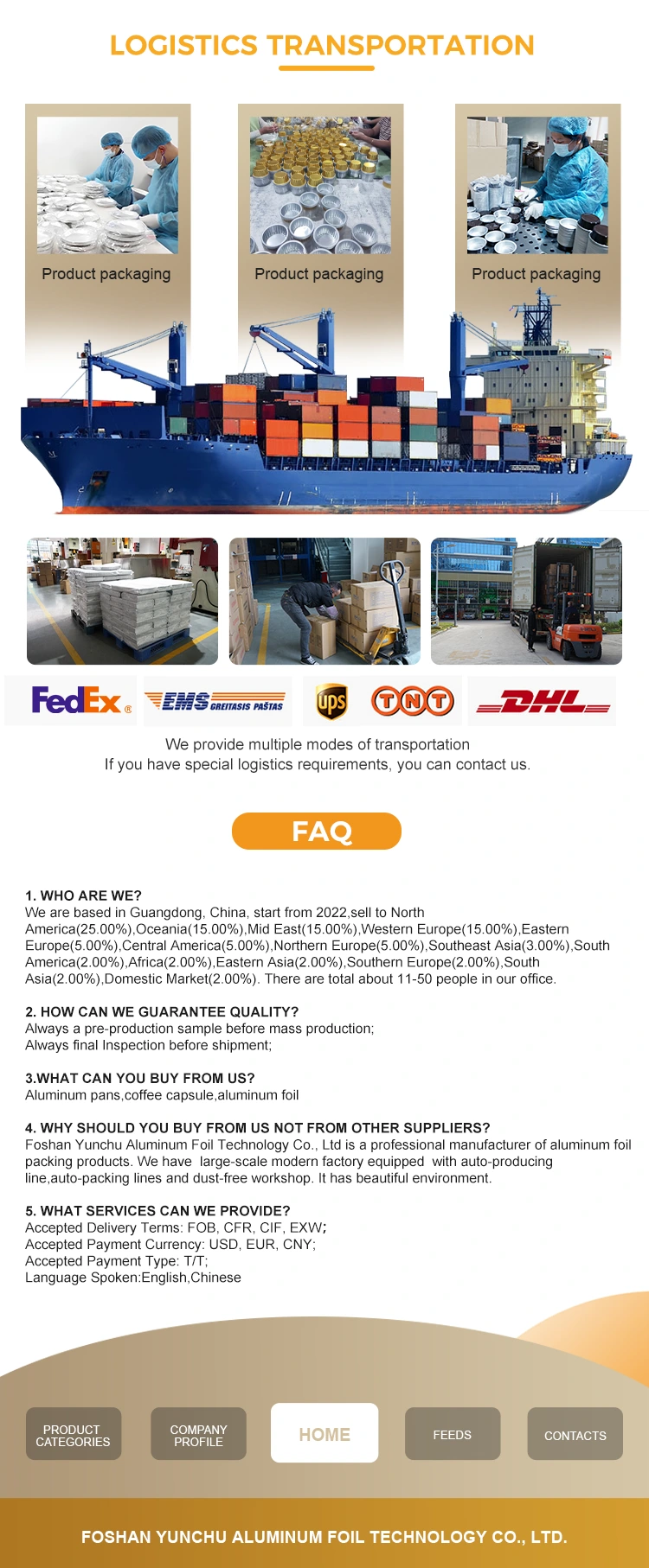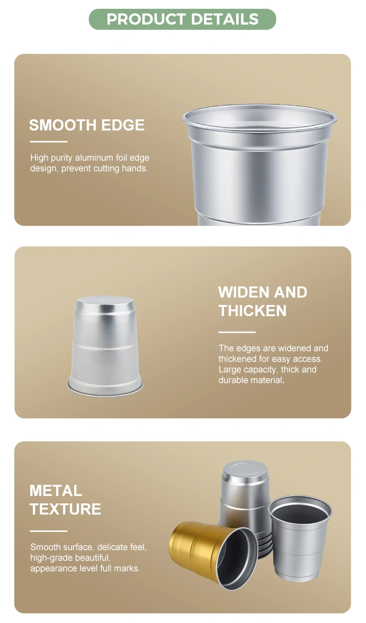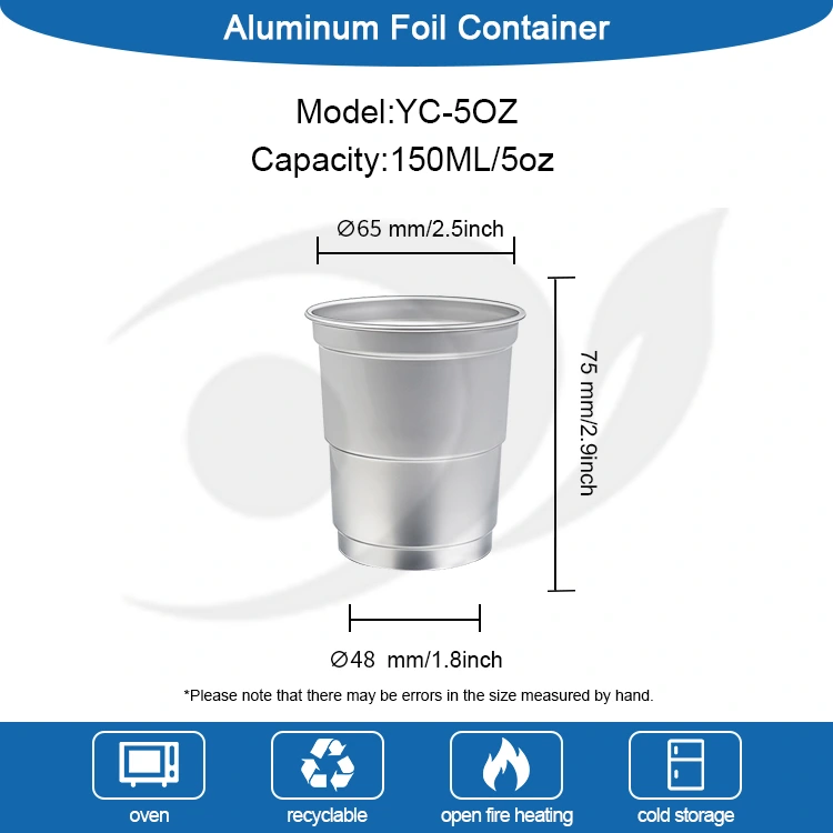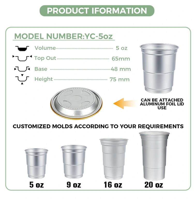Yunchu-alumiinifoliotoimittajan 5 unssin kertakäyttöinen kierrätettävä kylmäjuoma-alumiinijuomakuppi, jossa on yksinkertainen ja elegantti alumiinimetallirakenne, tekee tästä juomakupista sopivan monenlaisiin skenaarioihin ja kattaa useita toimialoja, kuten kaupalliset toiminnot, vapaa-ajan kokoontumiset, suuret tapahtumat jne., ja siitä on tulossa suosituin ratkaisu skenaariopohjaisiin pakkauksiin: