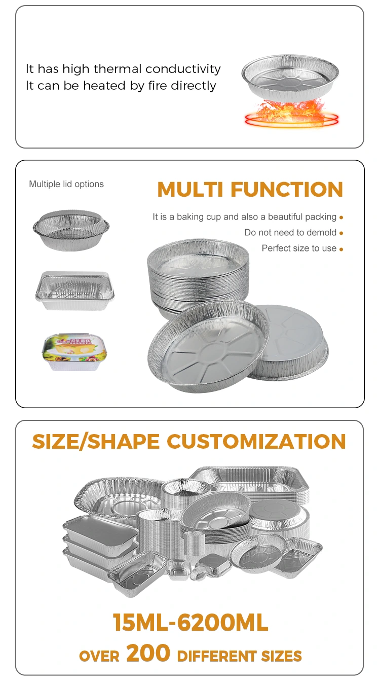 Yunchu -alumiinifolio tarjoaa 7 tuuman ryppyiset pizza -pannu -hopea -alumiinifolioastiat, joiden mallinumero 5067. Tuotteen ylempi halkaisija on 168 mm (noin 6,6 tuumaa), alempi halkaisija 145 mm (noin 5,7 tuumaa) ja korkeus 25 mm (noin 0,9 tuumaa). Kapasiteetti on noin 400 ml (noin 14,1 unssia), se on ihanteellinen pizzan leipomiseen tarttumatta leipomisen aikana, helppo vapauttaa muotti eikä haju. Lisäksi sen täysin puristettu muotoilu estää ruokaa vuotamisen, mikä lisää käytännöllisyyttä. Voimme tarjota myös logon räätälöintipalveluita, jotka auttavat sinua syventämään asiakkaidesi vaikutelmaa ja parantamaan tuotemerkkisi näkyvyyttä.