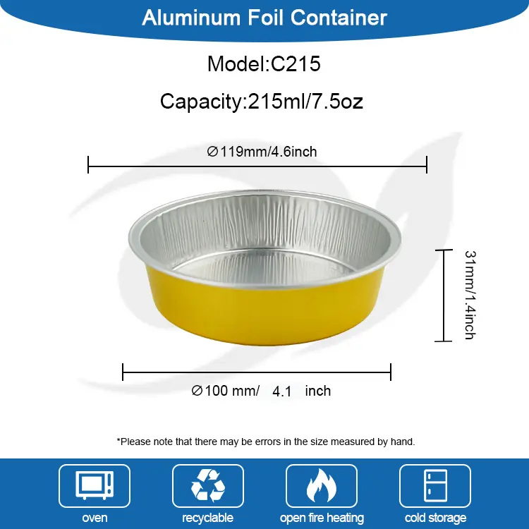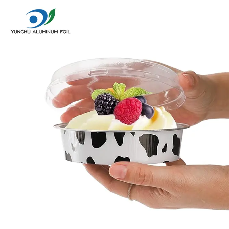 Yunchu-alumiinifoliovalmistajan kertakäyttöiset leivinpakkaukset pyöreät sileäseinämän alumiinifolioastiat on valmistettu elintarvikelaatuisesta 8011-0-alumiinifoliosta, sileällä ja kirkkaalla pintakuviolla, joka ei vain näytä hyvältä ja jolla on erinomainen korkean lämpötilankestävyys, voi lämmittää avoimet liekit, uunit ja mikroaaltoovenien, ja se on vastustuskykyinen alhaisten teemereiden viileys- ja mikroaalto- kokoonpanolinjatehtaissa. Siinä on erilaisia sopivia lemmikkieläinten läpinäkyviä korkkeja ja alumiinifolion lämmön tiivistyskorkkeja, joita voidaan levittää laajempaan skenaarioon. Ja tavanomaiset fyysiset ominaisuudet ja kätevä tavan käyttö saadakseen monia asiakkaita saattamaan korkealaatuisen kokemuksen.