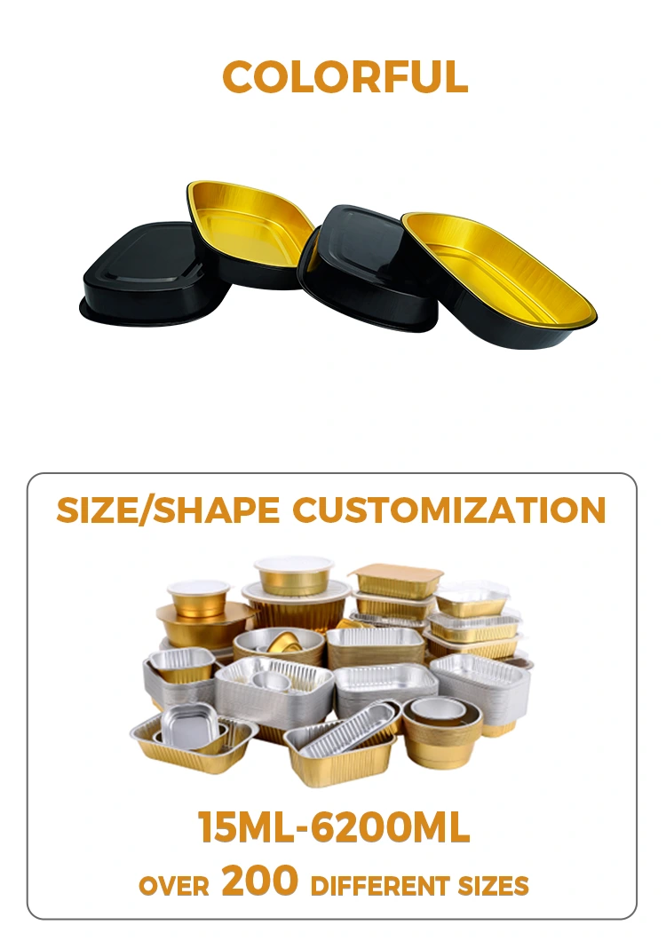 Yunchu-alumiinifoliotoimittajan kertakäyttöiset mustat kultaiset ateriapalvelut Suorakulmainen alumiinifolioastias on sopiva useille ihmisille tai yksittäisille annoksille tai itsepalvelun ruokailuskenaareille, erityisesti soveltuville ruokia, kuten gratin- tai leivottuja pastaa. Tämä tuote soveltuu myös lounaslaatikoille, ateriapalveluihin ja takealle sekä valikoivien ruokien valikoivaan pakkaukseen. Astia on valmistettu korkealaatuisesta elintarvikelaatuisesta alumiinifoliosta, joka on turvallinen ja hajuton, ja se täyttää kansainväliset elintarvikkeiden kontaktistandardit. Yhdistettynä lämmön tiivistyskalvoon se voi saavuttaa tehokkaan tiivistyksen ja estää tehokkaasti keittovuodot, joten se sopii automatisoituihin tiivistyslaitteisiin. Astialla on sileä ja litteä pinta helpon merkinnän ja kauniin ulkonäön, joka auttaa parantamaan tuotemerkkikuvaa. Se on kestävä korkeille ja matalalle lämpötiloille, sitä voidaan käyttää lämpötila -alueella -20 ° C -250 ° C, ja tukee erilaisia ​​lämmitysmenetelmiä, kuten jäähdytystä, leipomista ja höyrystämistä. Alumiinifoliomateriaali on 100% kierrätettävää ja täyttää kestävän kehityksen vaatimukset.
