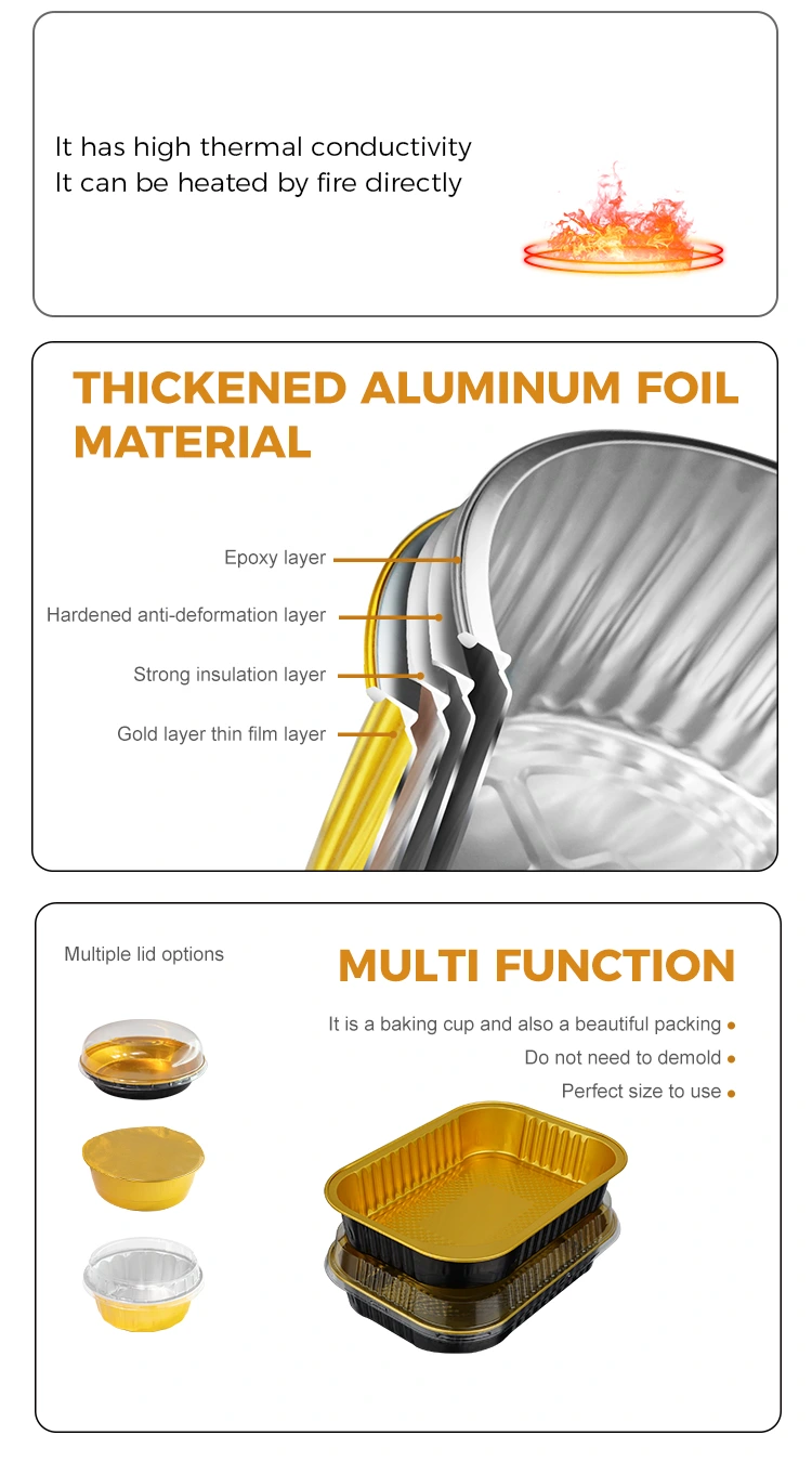 Yunchu-alumiinifoliotoimittajan kertakäyttöiset suorakaiteen muotoiset catering-ruokailun kevytseinäiset alumiinifolioastiat on valmistettu elintarvikelaatuisesta. Ne on tiukasti käsitelty ja seulottu, eikä niissä ole mitään erikoista hajua. Koko tuotantoprosessi suoritetaan puhtaassa ja pölyttömässä konepajassa ilman haitallisia lisäaineita. Riisi, liha, keitto jne. voivat myös olla suorassa kosketuksessa. Tämä alumiinifoliosäiliö on läpäissyt Yhdysvaltain FD A -elintarvikelaatusertifikaatin noudattaen tiukasti FDA:n standardeja. Ammattimaisen testauksen jälkeen alumiinin siirtymämäärä on paljon pienempi kuin määritetty raja ja testi on standardien mukainen. Olemme saaneet virallisen testiraportin. Sitä ei voi käyttää ainoastaan ​​kotimaisessa ateriapalvelussa, vaan se täyttää myös täysin ulkomaille vietävälle viennille asetetut vaatimukset. Kaksinkertainen takuu, olipa kyseessä ketjupikaruoka, yksityinen keittiö tai rajat ylittävä takeout-kauppiaat, sitä voidaan käyttää. Se on luotettava ja kestää helposti äärimmäisiä lämpötilaeroja -20°C - 250°C. Jääkaapin jäähdyttämisestä ja pakastesäilytyksestä mikroaaltolämmitykseen, uunissa leivontaan ja jopa avotulilämmitykseen (vaatii lämmöneristystyökaluja), sitä voidaan käyttää kuuman keiton ja lämpimien ruokien pakkaamiseen mukaan otettavaksi. Vaikka säiliö pidettäisiin lämpimänä pitkään, se ei pehmene tai muotoile, eikä se sula tai tuota haitallisia kaasuja; Kun kuluttaja on vastaanottanut ruoan, hänen ei tarvitse vaihtaa astiaa, vaan laittaa se suoraan mikroaaltouuniin lämmitettäväksi. Lisäksi se johtaa lämpöä tasaisesti, joten kuumennuksen aikana ei tapahdu paikallista ylikuumenemista tai ruoan takertumista. Se voi säilyttää ruoan maun suurimmassa määrin. Olipa kyseessä paistettu riisi, muhennos tai grilli tai leivotut puolivalmisteet, se sopii pakkaamiseen.