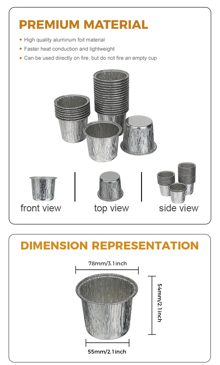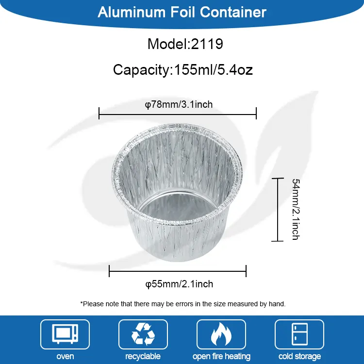 Yunchu-alumiinifolion valmistajan kertakäyttöinen pyöreä kakkukupin hopea-alumiinifoliosäiliö on valmistettu elintarvikelaatuisesta erittäin puhtaasta alumiinifoliosta. Se on läpäissyt tiukat laatutestit, eikä siinä ole hajua eikä haitallisia lisäaineita. Suora kosketus ainesosien kanssa antaa lisää mielenrauhaa ja suojaa jokaista makeutta ja terveyttä. Paksutettu alumiinifolioprosessi luo lujan kupin rungon, jota ei ole helppo muuttaa muotoaan tai rikkoa. Sitä voidaan käyttää erilaisiin kakkutaikinoihin, mousseen, vanukkaan ja muihin ainesosiin.