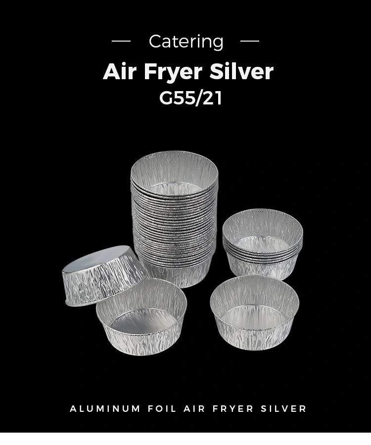• Kertakäyttöinen hopea pyöreä dip-ilmakeitin HopeaalumiinifolioruokasäiliötKertakäyttöinen hopea pyöreä dip-ilmakeitin Hopeaalumiinifolioruokasäiliöt