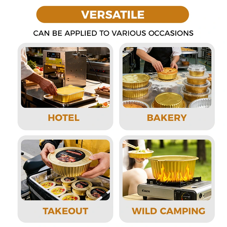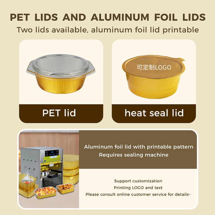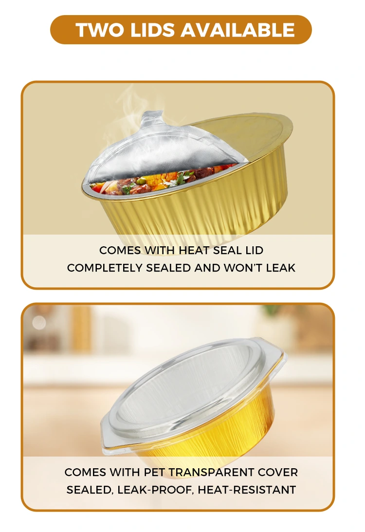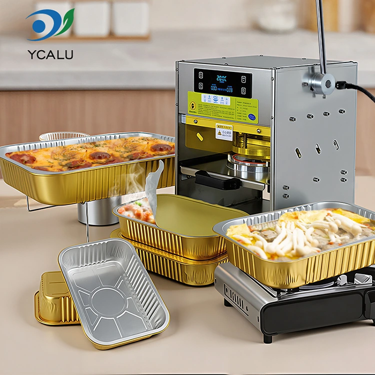 Yunchu on ammattimainen alumiinifoliosäiliöiden valmistaja ja toimittaja Kiinassa. Kultaisilla alumiinifoliosäiliöillä varustetulla manuaalisella kuumasaumauskoneellamme on kaksi etua: ulkonäön taso ja lujuus. Siitä on tullut suosituin yhdistelmä noutoruokailu-, ryhmäaterioiden toimitus- ja valmisruokateollisuudessa. Se ei ainoastaan ​​korosta brändin laatua, vaan myös ratkaisee pakkauksen vaivan, alentaa kustannuksia ja lisää kauppiaiden tehokkuutta ja tarjoaa kuluttajille rauhoittavan kokemuksen.