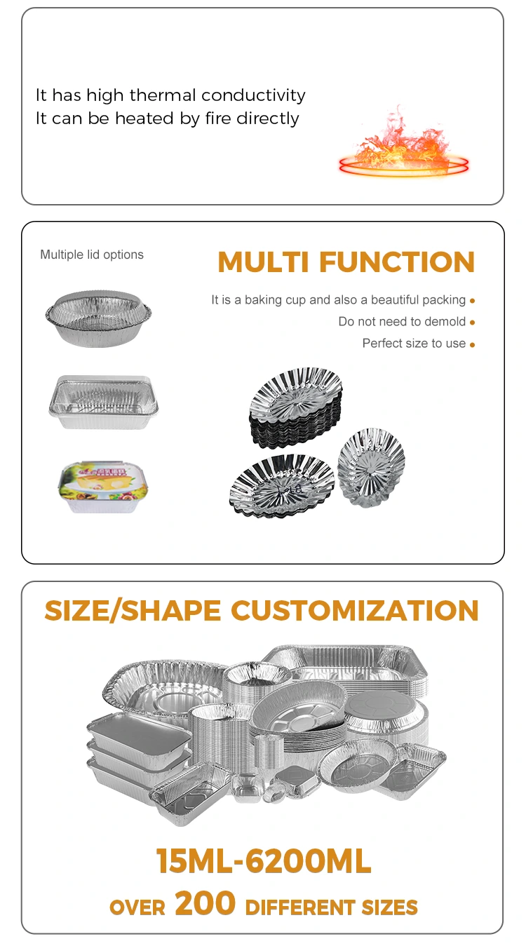 Yunchu -alumiinifolio soikea pitsi vaniljakastike hapokas hopea -alumiinifolioruokasäiliö on hyvä kumppani leivontaan, sekä muotina että pakkauksena. Se on valmistettu paksuuntuneesta ja kovasta materiaalista, jota ei ole helppo muodostaa ja sillä on voimakas painekestävyys, joten voit sanoa hyvästit potin pesuongelmiin ja suojata potin helposti. Eristirasva, sinun ei tarvitse pestä käytön jälkeen, sileä pohjaa ei ole helppo paistaa ja tarttua pohjaan, ei tartu ruokaan, helppo valmistaa. Pohja on sileä, jotta voit käyttää sitä enemmän mielenrauhaa, helppo vapauttaa muotti, kun sitä käytetään korkeassa lämpötilassa, helppo vapauttaa muotti lopputuotteen valmistumisen jälkeen, ei tartu pohjaan, ei vahingoita muotoa. Paksunettu ja kova materiaali, voimakas painekestävyys, jätä hyvästit ruukujen pesuongelmille ja suojaa helposti potin. Eristirasva, sinun ei tarvitse pestä käytön jälkeen, sileä pohjaa ei ole helppo paistaa ja tarttua pohjaan, ei tartu ruokaan, helppo valmistaa. Pohja on sileä, se kestää -20 ° C -300 ° C, se voidaan lämmittää avoimen liekin päällä ja muotti lämmitetään tasaisesti.