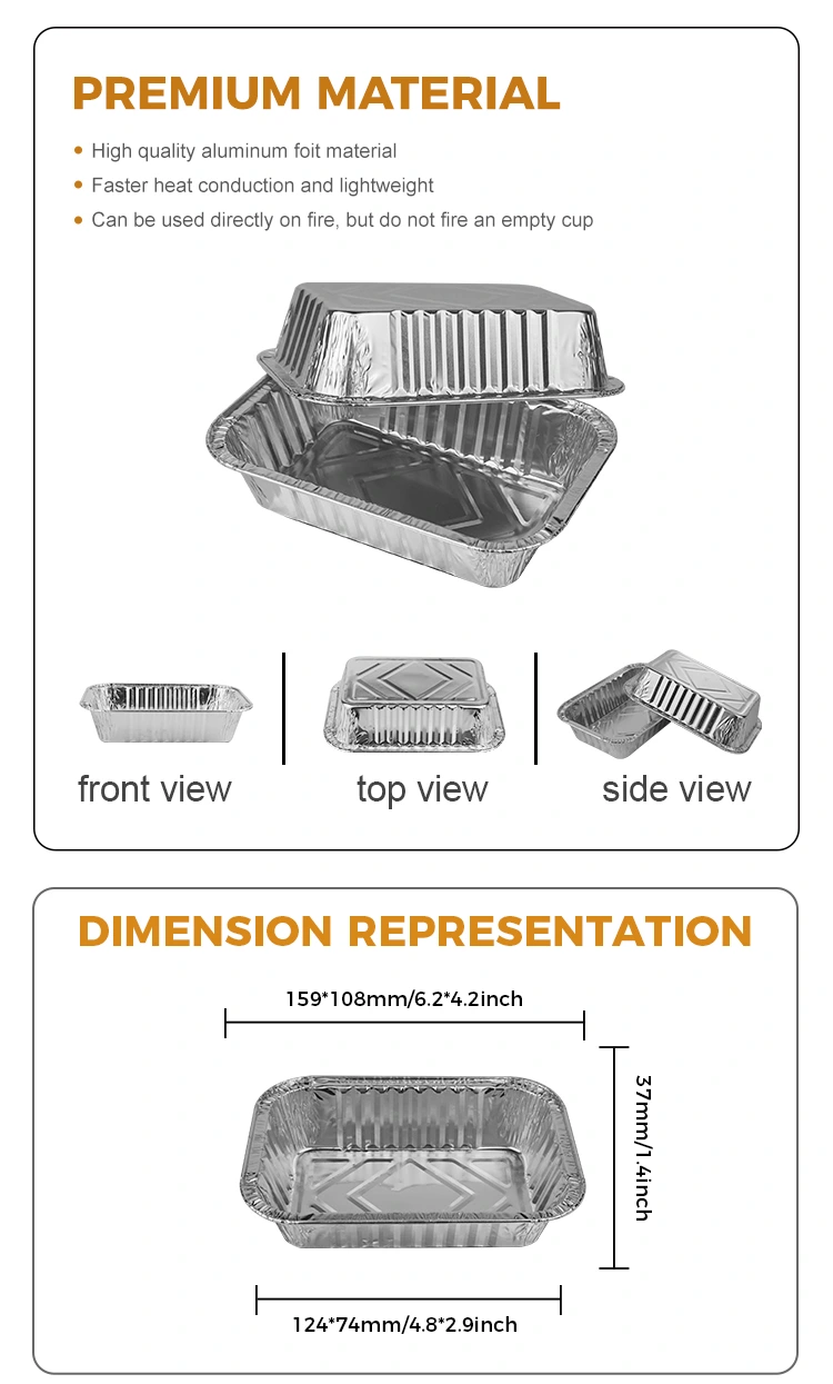 Yunchu-alumiinifoliotoimittajan 2322 suorakaiteen muotoinen leivinpannu-hopeafolioastia valmistetaan elintarvikelaatuisella alumiinifoliomateriaalilla, mikä varmistaa ruoan turvallisuuden ja hajuvapaan. Tuote on puhdas ja kierrätettävä, mikä antaa sinulle enemmän mielenrauhaa sitä käytettäessä. Sen mitat ovat 159 mm (6,2 tuumaa) ja 108 mm (4,2 tuumaa) ylähalkaisijoita, 124 mm (4,8 tuumaa) ja 74 mm (2,9 tuumaa) alempi halkaisija, 37 mm (1,4 tuumaa) ja kapasiteetti noin 400 ml (14,1 oz). Alumiinifoliolaatikoissa on erinomaiset lämmön säilyttämistoiminnot, erityisesti soveltuvat takean ja ostoskeskuksen ruoan lämpötilan hallintaan, olipa kyse pienistä kakkuista tai hedelmämateriaaleista.