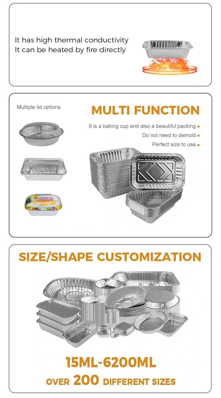 Yunchu -alumiinifoliotoimittajan malli 2322 Suorakulmainen leivontapannu hopea -alumiinifoliosäiliö on markkinoilla erittäin suosittu erinomaisen tuotteen laadun ja ainutlaatuisen suunnittelun vuoksi. Tuoterakenne on joustava vastaamaan erilaisten skenaarioiden tarpeita ja tarjoaa räätälöityjä palveluita, mukaan lukien logo ja kuvion tulostaminen, mikä auttaa parantamaan tuotemerkkikuvaa. Lisäksi alumiinifoliokannen yhdistelmätukkujen tilauspalvelu on myös erittäin suosittu, yhdellä räätälöityllä MOQ: lla 1000 kappaletta.