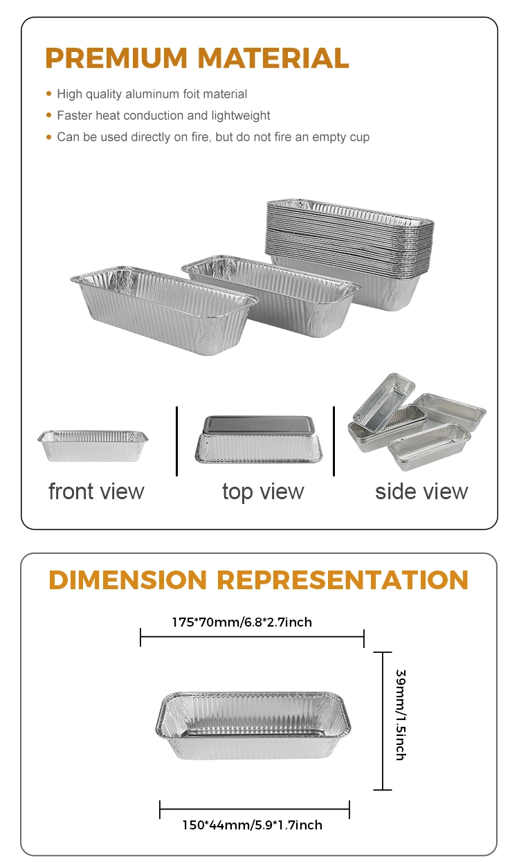 Yunchu -alumiinifoliotoimittajan suorakaiteen muotoinen leipälokero hopea -alumiinifolioastia tukee erilaisia ​​lämmitysmenetelmiä, joten voit nauttia leipomisesta milloin tahansa, ja lämmön säilyttämisvaikutus on huomattava. Päivitetty ja sakeutunut muotoilu, valittu korkealaatuiset ympäristöystävälliset materiaalit, elintarvikelaatuinen alumiinifolio, yksiosainen muovausrakenne on luotettavampi. Kierretty reunasuunnittelu johtaa lämpöä nopeasti ja tasaisesti, mikä tekee vähemmän todennäköistä polttaa pohja leipomisen aikana ja helpottaa ruoan poistamista. Tätä tuotetta käytetään laajasti grilli- ja leivonta -alalla, erityisesti soveltuvan eri tapauksiin, kuten retkeily, leipomot, grillipöydät, takeaway -toimitus ja sushi -ravintolat. Sen suunnittelu on hyvin sopeutunut useimpien kotien ja kauppojen käytännön tarpeisiin.