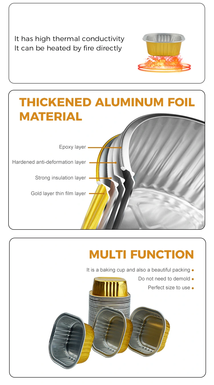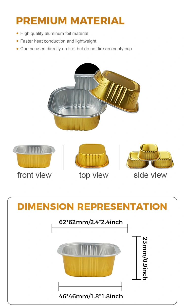 Neliön muotoiset jälkiruokien leivontakupit Smoothwall-alumiinifolioastioissa on vahva paksuus, vahva korroosionkestävyys, ne eivät helposti muotoile ja voivat olla suorassa kosketuksessa ruoan kanssa. Kaikki tuotteet ovat läpäisseet ISO 9001 -laatujärjestelmän sertifioinnin ja ne on valmistettu FDA:n elintarviketurvallisuusstandardien mukaisesti. Ne ovat taatusti myrkyttömiä ja hajuttomia, ja niitä voidaan käyttää luottavaisin mielin.